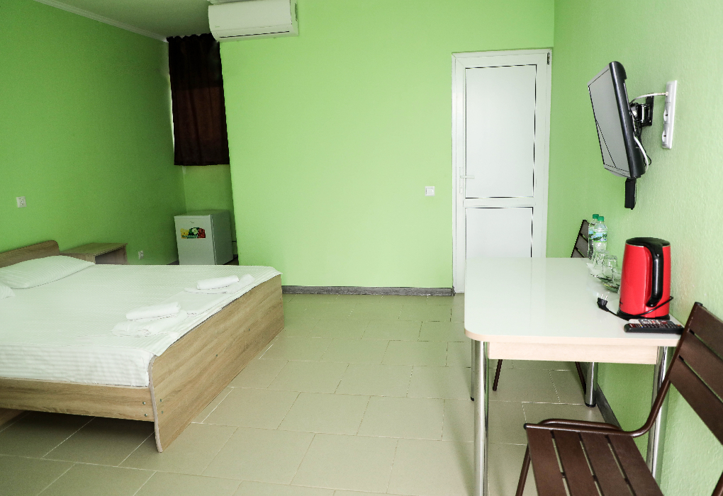Площадь номера - 25 кв.м. 1 комната. 2 осн. места. В номере: телевизор; холодильник; кондиционер; душ; туалет; фен; 2-спальная кровать; чайник. 2 доп. места: